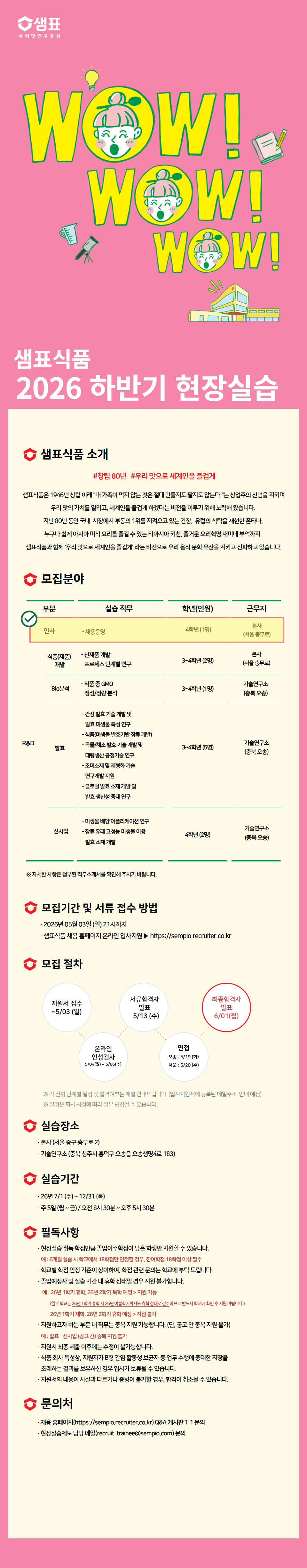 ■ [샘표식품] 2026학년도 하계·2학기 연계 현장실습학기제 참여 안내