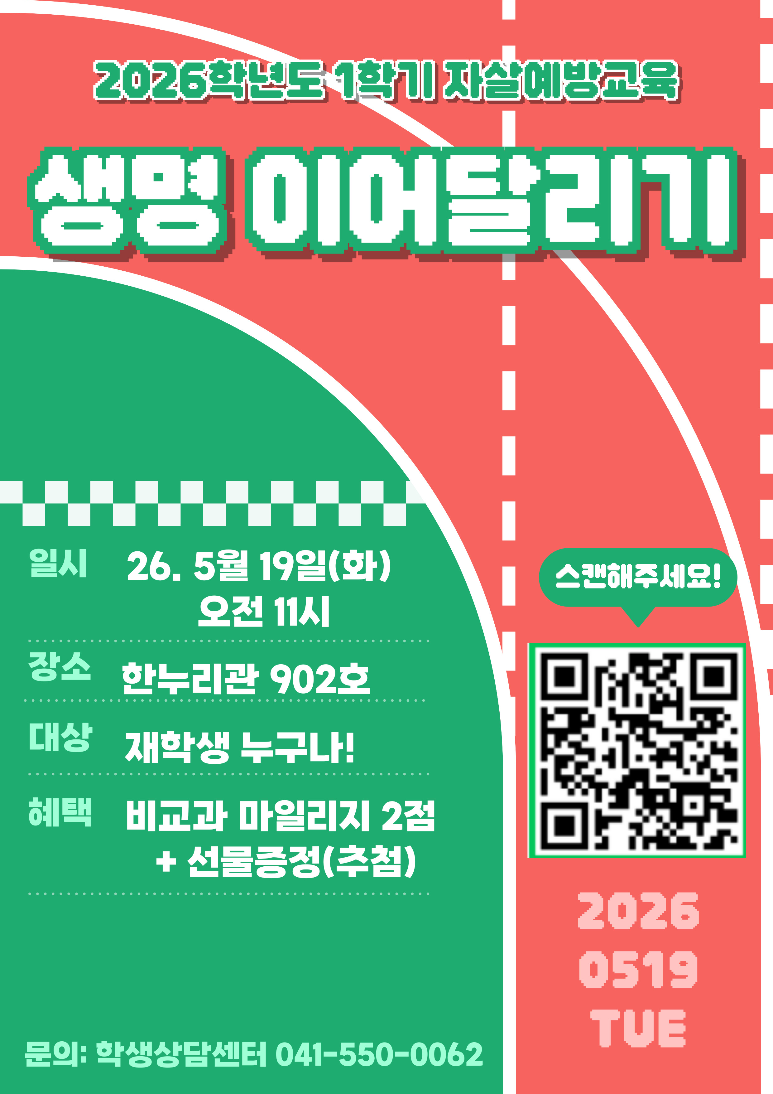 학생상담센터에서 2025학년도 1학기 자살 예방 교육을 진행합니다.