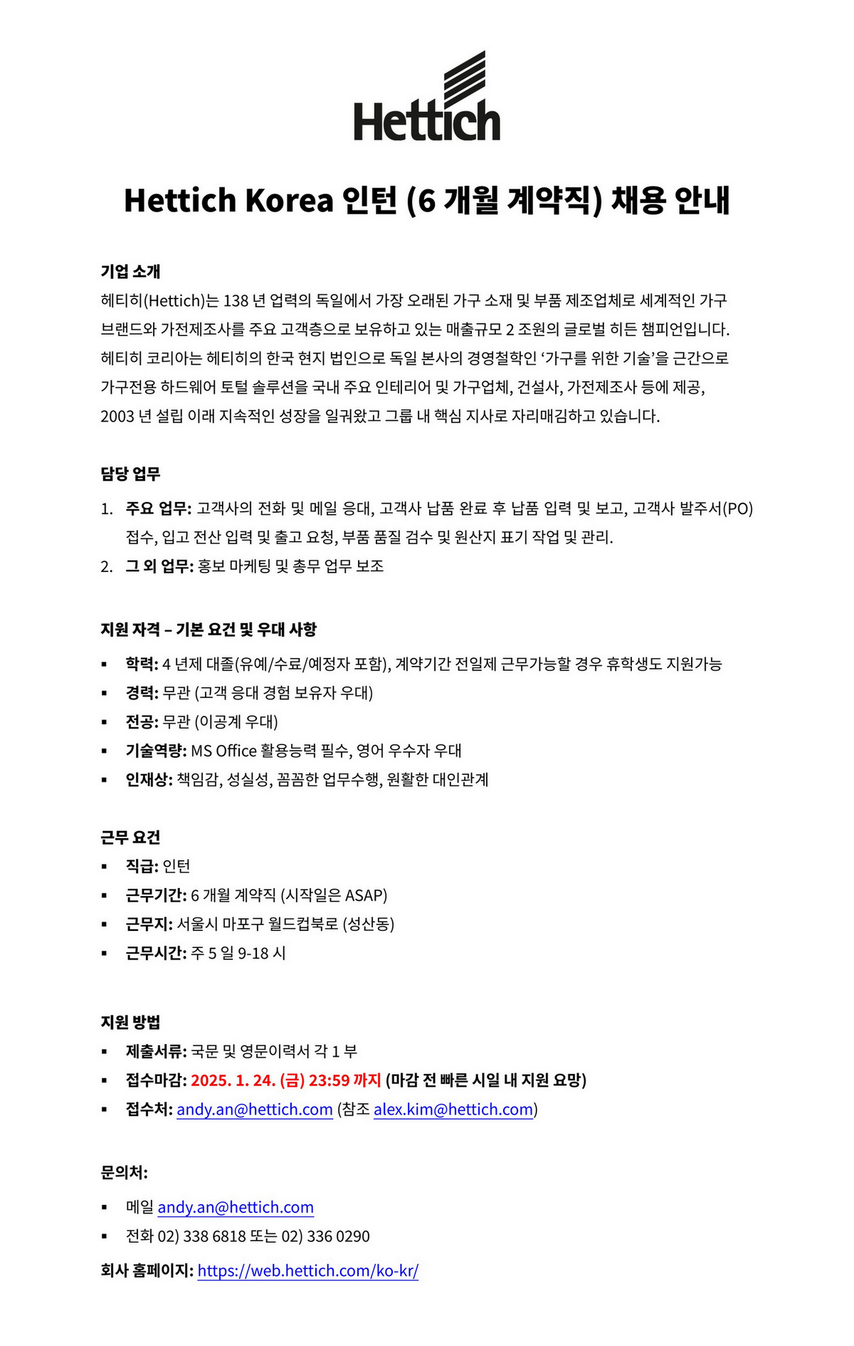 상명 [진로취업] Hettich Korea 인턴 채용 안내 -