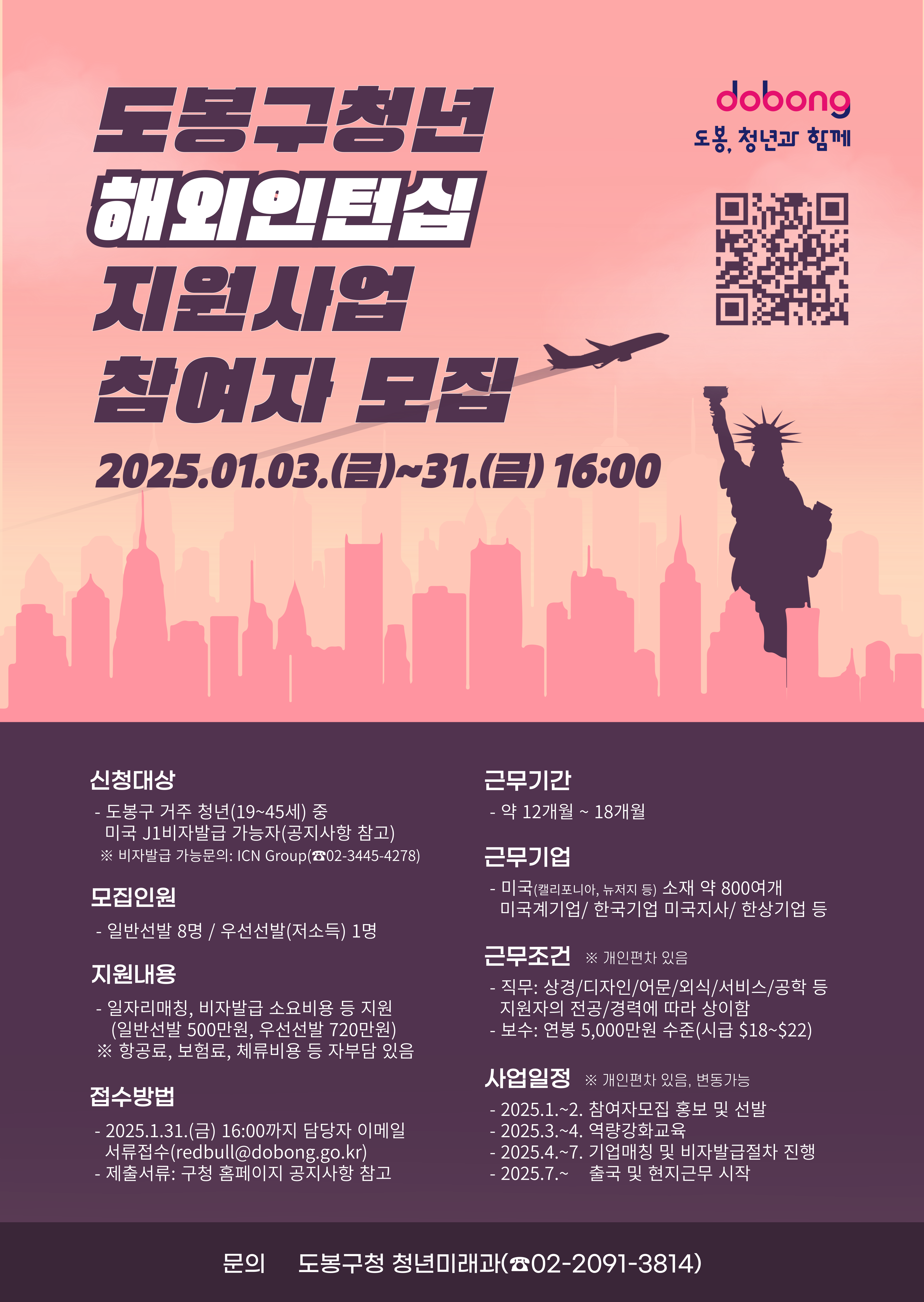 상명 [진로취업] 2025 도봉청년 해외인턴십 지원사업 참여자 모집 안내(대학교) -