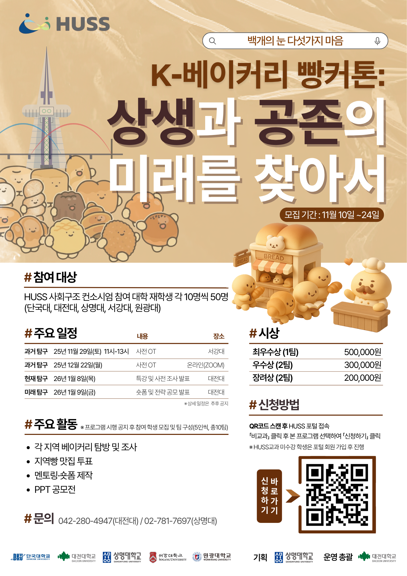[HUSS 인문사회융합인재양성사업단] 백개의 눈 다섯가지 마음 'K-베이커리 빵커톤: 상생과 공존의 미래를 찾아서' 안내
